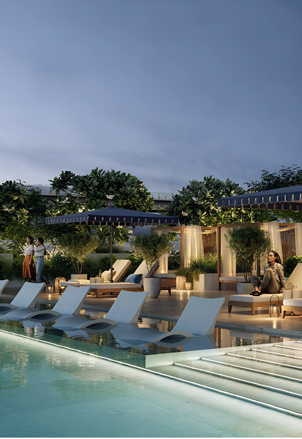 The project offers elegant branded residences with panoramic views of the creek, skyline, and surrounding lagoons, combining refined architecture with world-class hospitality standards.